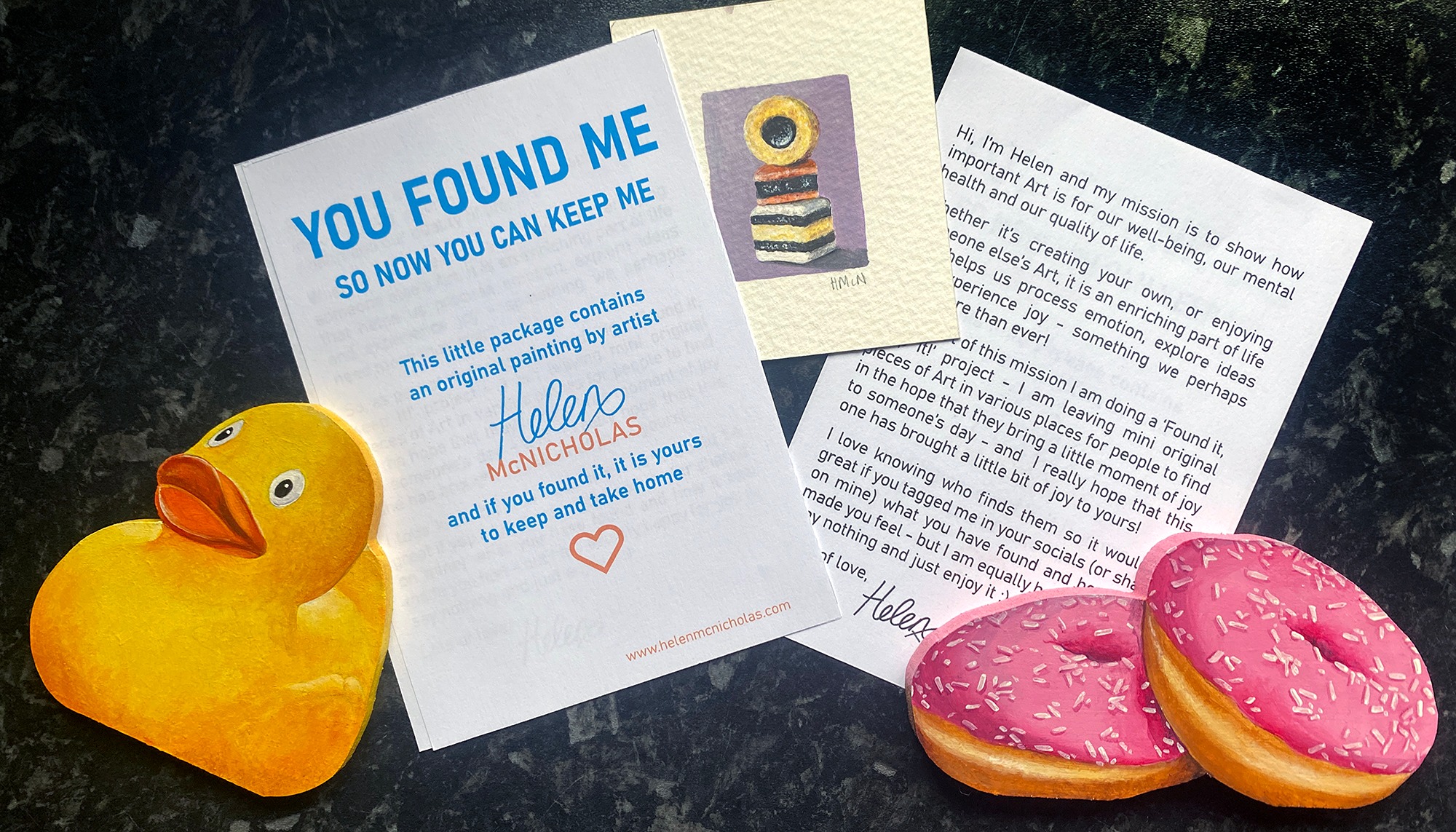 One of the biggest reasons I want you to welcome more Art into your life is because it can add so much colour, joy and enrichment to grey, serious days. This has led me to start a 'Find Me, Keep Me' project - a project that involves me leaving small, original paintings out and about in public spaces in the hope that they bring a moment of joy to someone's day.