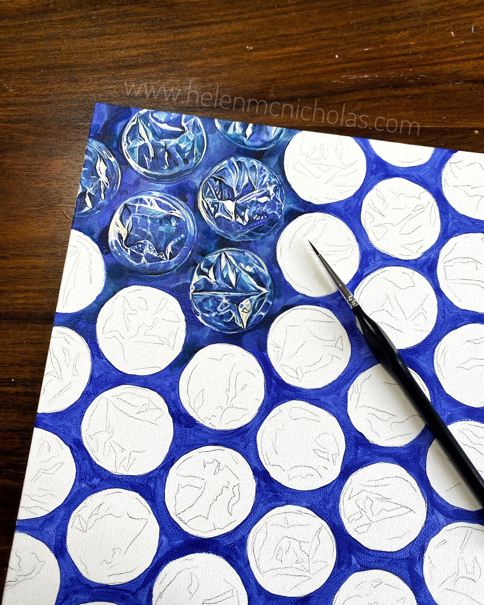 My work is currently taking another shift and I am just embarking on a new series of paintings inspired by the opening line from the poem 'Auguries of Innocence' by William Blake. I have always been fascinated by the small, ordinary details in every day things - the shapes, colours and patterns that we rarely notice - and this opening line 'To see a world in a grain of sand..' perfectly sums up what I want these paintings to be about.